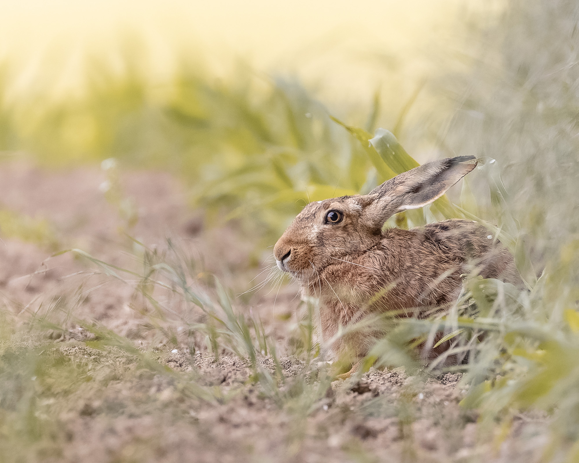 Der Feldhase ist ein typischer Bewohner unserer offenen Landschaften und ein Meister darin, mit seiner Umgebung zu verschmelzen. Er verlässt sich mehr auf seine Sinne als auf Tarnung: große Augen, große Ohren und ein beeindruckender Blickwinkel. Wenn man ruhig bleibt, auf Abstand achtet und keine hektischen Bewegungen macht, kann man Feldhasen oft länger beobachten, als man denkt. Viele meiner Begegnungen entstehen im Sitzen oder Liegen im Feld, wenn es um mich herum still wird und der Hase merkt, dass keine Gefahr von mir ausgeht. Besonders spannend finde ich diese Momente, in denen er kurz aufrichtet, horcht und sich entscheidet, was als Nächstes passiert.